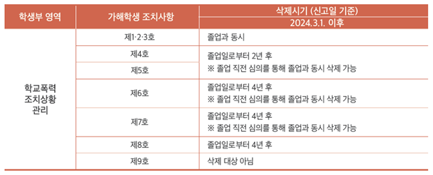 6~7호(출석정지, 학급교체)는 졸업 후 4년이 지나면 삭제할 수 있습니다.